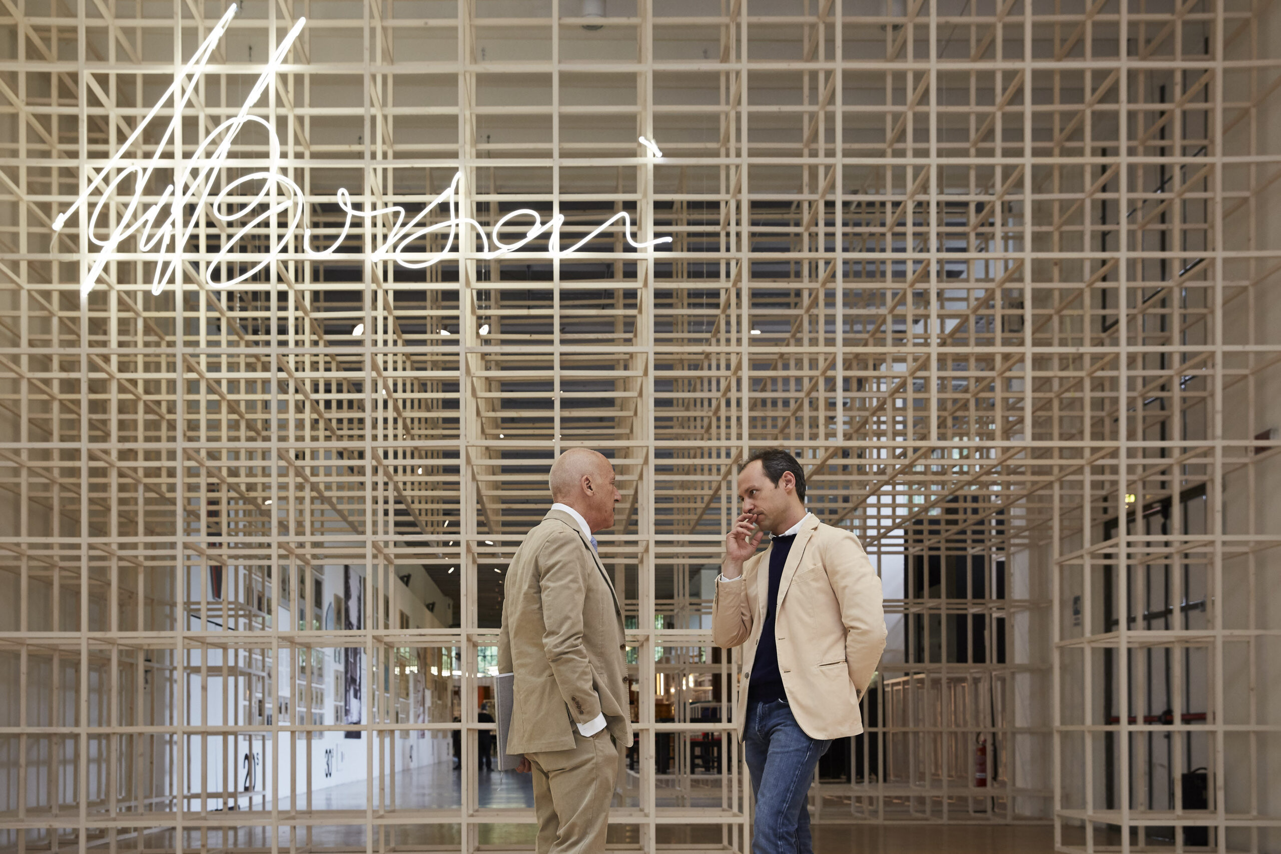 En términos del diseño de la exposición, Foster afirma: «El tema central de una cronología…permitirá al visitante guiarse durante los diferentes periodos de trabajo de este no tan conocido pero importante pionero del diseño, además del camino para descubrir los entresijos del gran proceso de diseño». El sistema de exposición cúbico, inspirado por las esculturas arquitectónicas de Sol Lewitt, necesitó de más de 30000 piezas de madera para el montaje. El monumental y flexible sistema abarca la totalidad de la longitud de la galería con forma de U de la Triennale, mostrando en la pared contraria fotografías y dibujos originales.